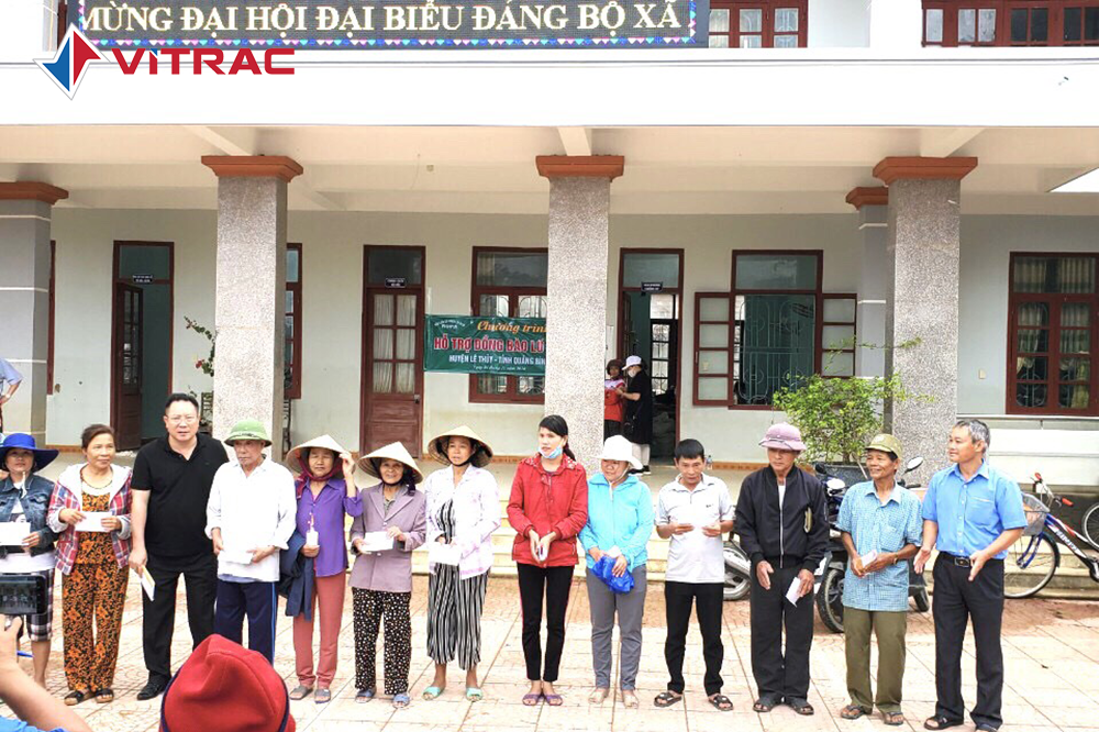 Ông Nguyễn Ngọc Sơn - Tổng giám đốc Công ty vận tải Vĩnh Phú đại diện cho VITRAC, trực tiếp đến và trao tận tay những phần tiền và quà cứu trợ quý giá cho bà con bị thiên tai lũ lụt tại hai tỉnh Quảng Bình và Quảng Trị.