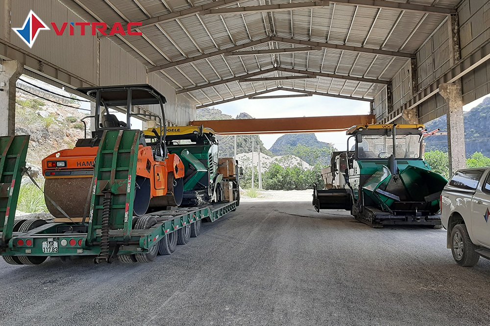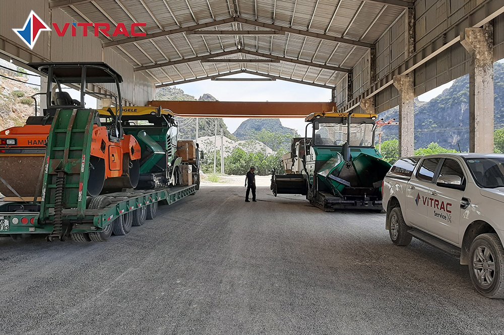 Để hỗ trợ khách hàng đáp ứng tiến độ công việc, VITRAC đã không ngần ngại cho Minh Nguyên mượn 1 máy trải Vogele S1800-2 và 1 xe lu bánh lốp Hamm GRW18 trong khi chờ các thiết bị đặt mua cập cảng.