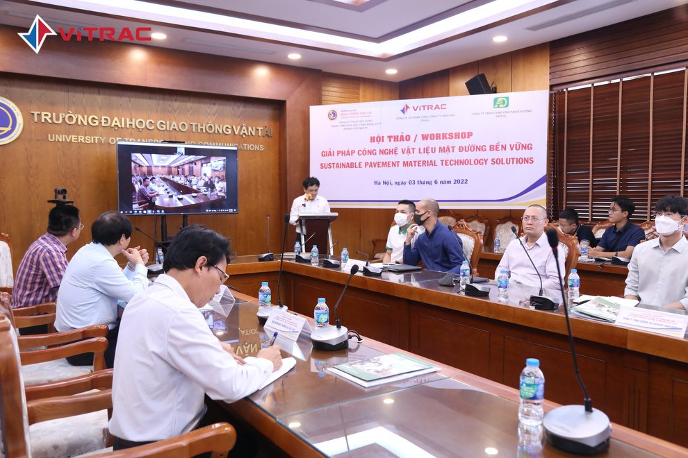 Ngày 03/06/2022 vừa qua, Trường Đại học GTVT Hà Nội kết hợp cùng VITRAC đồng tổ chức Hội thảo về giải pháp công nghệ mặt đường đáp ứng yêu cầu phát triển bền vững ở Việt Nam. Hội thảo đã thu hút rất nhiều đại biểu là các chuyên gia, các đại diện công ty trong ngành cùng đến dự.