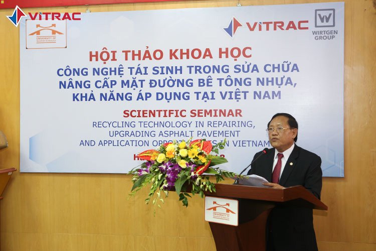 Trong những năm qua, công nghệ cào bóc tái sinh được đánh giá là một trong những giải pháp tối ưu, khả thi và phù hợp trong sửa chữa, nâng cấp mặt đường bê tông nhựa tại Việt Nam. Nhằm tiếp tục nghiên cứu, tìm kiếm các giải pháp về thiết kế, vật liệu, công nghệ thi công để đáp ứng tốt hơn các yêu cầu kỹ thuật trong duy tu, sửa chữa, nâng cấp các tuyến đường tại Việt Nam, ngày 03/7/2018, Trường Đại học Công nghệ GTVT phối hợp với Công ty Cổ phần Tổng công ty Vĩnh Phú (VITRAC) tổ chức hội thảo khoa học công nghệ tái chế trong sửa chữa, nâng cấp mặt đường bê tông nhựa, khả năng áp dụng tại Việt Nam.