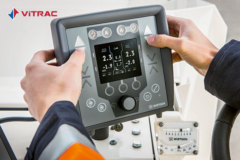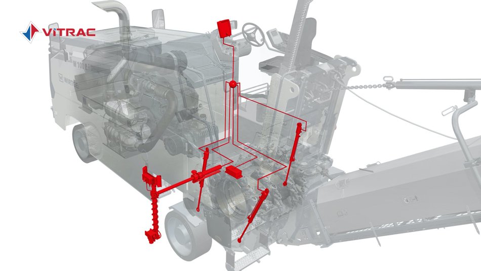 - Đo độ sâu cào bóc thông qua các cảm biến dịch chuyển trong các xi lanh thủy lực của các tấm bên.