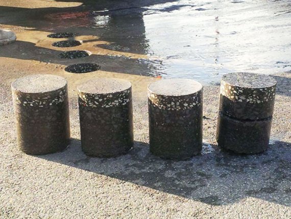 The quality of the bond between layers is one of the most significant criteria for assessing the durability of a road. Shear strength and shearing distance are representative parameters when it comes to forecasting durability. A total of 16 drill cores were taken under official supervision in Brodenbach: four from the section with conventional pre-spraying of emulsion and twelve from the “SprayJet sections”.