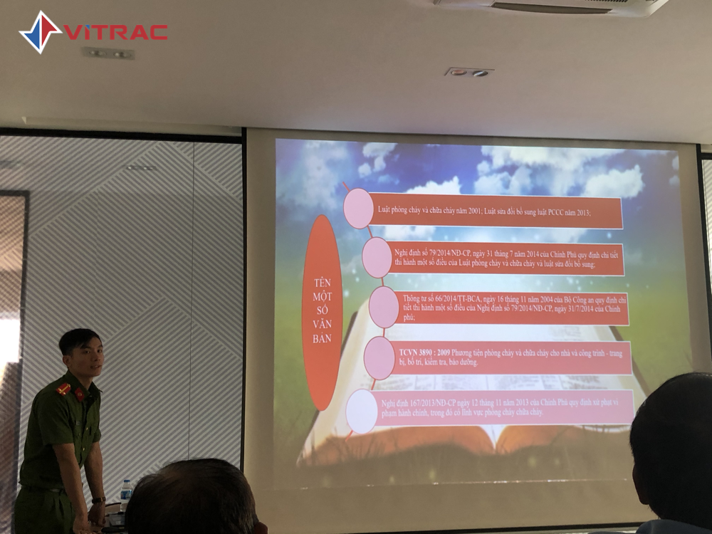 Tại buổi tập huấn, các cán bộ của Phòng cảnh sát PCCC đã giúp cán bộ nhân viên công ty VITRAC hiểu rõ hơn về Luật phòng cháy và chữa cháy, các Nghị định, Chỉ thị, Thông tư của Chính
