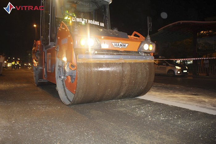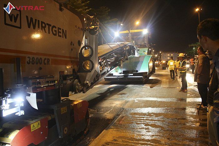 Dàn thiết bị hiện đại triển khai tái chế mặt đường tối 25-6-2017