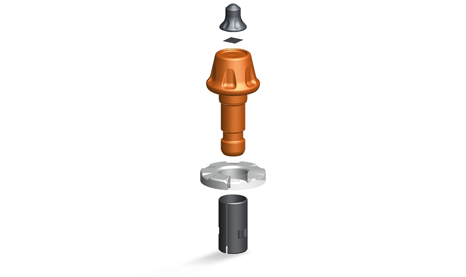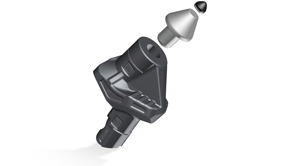 Picks with 42-mm shank diameter are usually fitted with short clamping sleeves and are used in HT14 and HT15 toolholder systems. These tools are installed in the holder using a copper hammer. Clamping sleeves ensure a rapid, easy change of cutting tools.