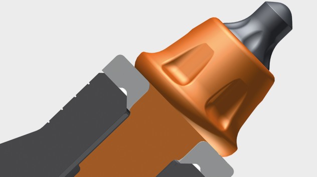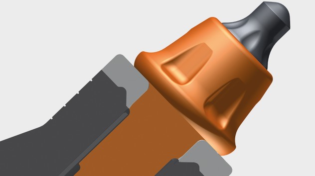 The relatively large steel body volume compared to conventional picks and the reinforced wear plate deliver the longest possible service life for tools and optimum protection for the upper part of the toolholders in applications involving abrasive materials.