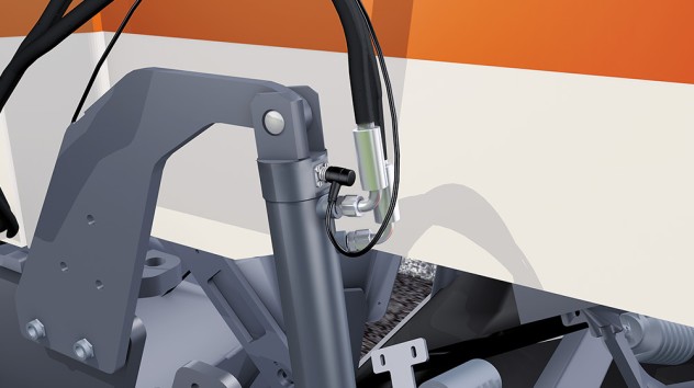 Hydraulic cylinder sensor: Path sensors in the hydraulic cylinder determine the difference between the side plate and machine chassis. |