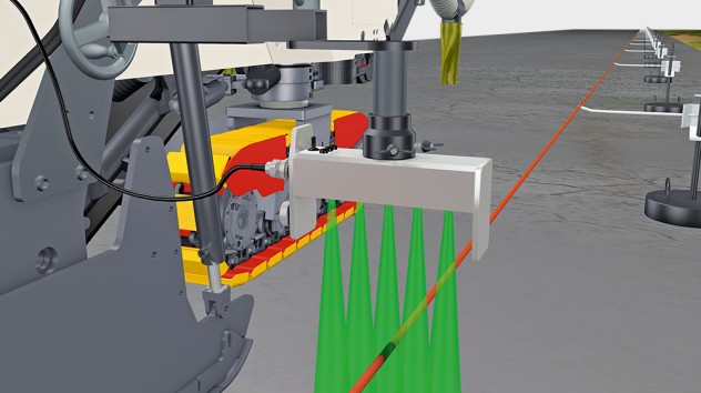 Deviations from the target value are picked up by the sensors and calculated by the levelling system, which then automatically transmits a corrective value to the machine. Different sensors are used for different applications depending on the reference used (e.g. pavement surface, kerb or stringline).